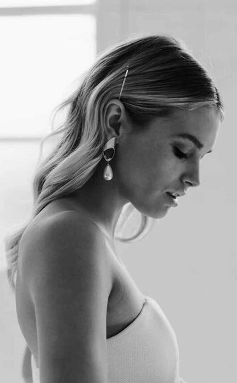 Die Elwood Ohrringe sind die perfekte Wahl für ein schlichtes Brautkleid oder eine stylishe Ergänzung zu Deinem Standesamtoutfit.