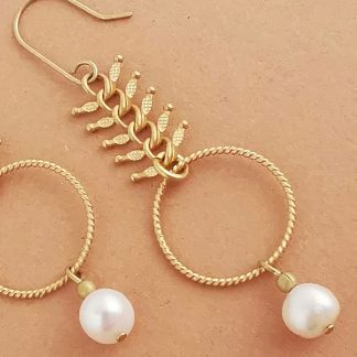 Braut Ohrringe im Boho Look: Die Kombination von Perlen mit Fischgrät ist soo schön! Der klassische Charakter der Süßwasserperle mit dem edgy vibe der matt vergoldeten Metallelemente: Gegensätzlich und gleichzeitig passend. Komplimente sind dir mit diesen Perlen Ohrringen im Boho Stil sowas von sicher! Und auch wenn du sie nach der Hochzeit im Alltag trägst: Sie sind nie fehl am Platz und immer ein Hingucker. Das schöne ist auch, dass sie besonders leicht sind!